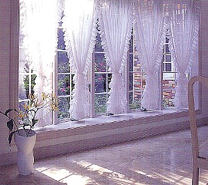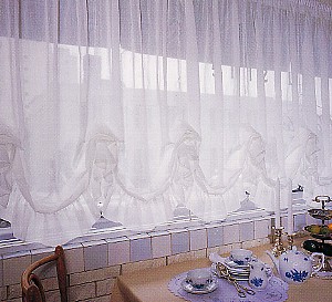 | セパレート | ボウウィンドウ縦長小窓にお勧めスタイルです。窓辺をリズミカルにドレスアップします。また、アクセントのリボンタッセルが可愛らしく窓辺を彩ります。 | ![]() |